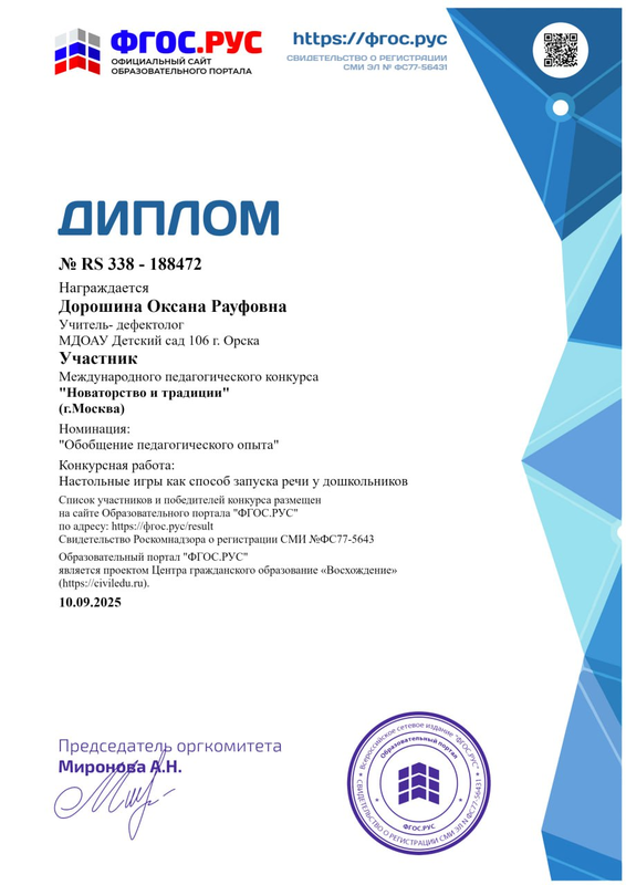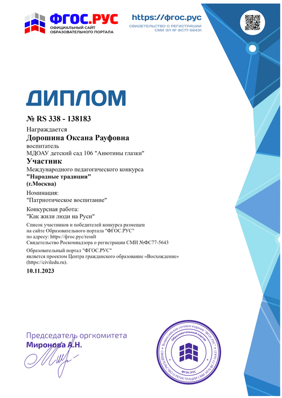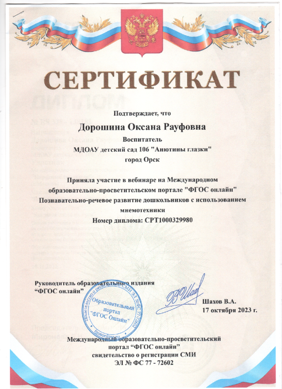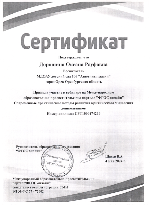 Дорошиной Оксаны Рауфовны